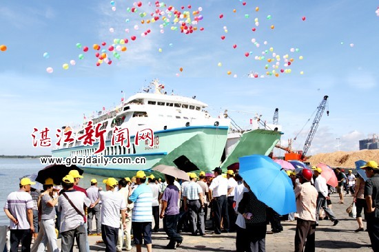 是日上午9时16分许,醒狮舞动,锣声、鼓声、鞭炮声顿时响彻云霄。随着一声令下,“双泰18号”轮从徐闻海安新港正式启航,在琼州海峡北岸的海面上朝着海南岛方向徐徐驶去……