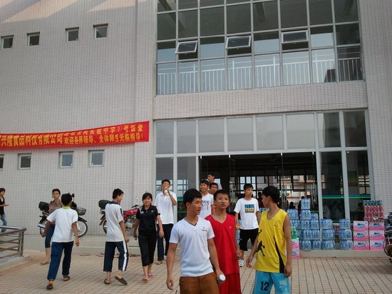 徐闻县实验中学校长林茂文介绍,实验中学八月份开始筹备开学工作,仅用一个月完成了教学、师生生活设施的建设及环境卫生的整治,所有师生已于8月31日入校住宿,9月1日正常开学上课。林茂文反映,该校全部引进高校管理模式,学生校园消费统一刷卡消费,确保安全卫生;饭堂实行低碳环保运作,全部采用煤气,学生统一使用餐具,设置四个大型消毒柜对餐具进行全面消毒。