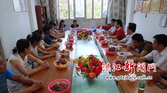 吴川市委书记曹兴、市教育局局长庞观保等领导与教师座谈
