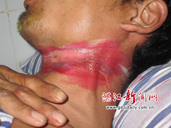 笔者傍晚6时50分在和安卫生院,看到蒙义清的脸部左侧和鼻子等处,都有摔伤、跌破皮、发肿的伤痕。刚刚做了嘴唇缝合手术的他,向笔者陈述了事情的经过。而伤者的家属及亲人,正围在和安镇的联通营业厅,等待中国联通公司徐闻分公司的有关人员,前来处理该事件。