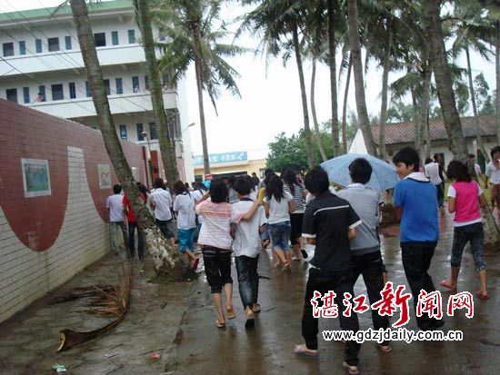 今天早上,台风前锋已经到来,风夹杂着雨呼呼作响,学校又紧急召开了全体教师会议,具体部署防风工作,布置学生离校事宜。陈校长在会上特别强调班子成员和班主任要做好学生离校跟踪工作。7点30分左右,学生已经有组织地陆续离校,但由于风雨已起,渡船停航,冬松、北莉这两个村委会的学生被迫在学校停留,学校派专人到宿舍专门陪护,并责成食堂正常开饭,确保学生的身心健康。