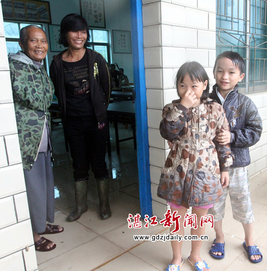 台风纳莎带来了大量降水,同时又遇天文大潮,为保护群众生命财产安全,徐闻白沙村及附近地区有三万多人在相关领导组织下转移到安全地带。图为徐闻白沙村村民在转移安置点露出安心的笑容。记者 孙昊声 摄