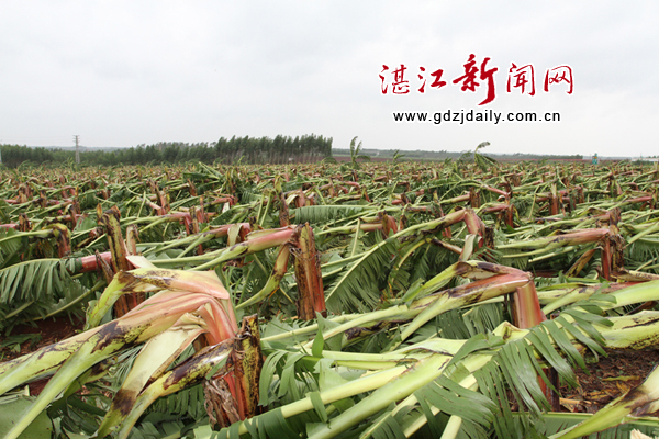 湛江新闻网讯:“纳莎”徐闻登陆,重创徐闻。记者驱车徐闻各条道路,沿路一片狼籍,可看到大量倒下的树木。此次香蕉受损最为严重,香蕉大片倒伏,昔日郁郁葱葱的景象荡然无存,甚至打桩加固的香蕉也难逃厄运。据徐闻三防部门反映,徐闻全县香蕉大部分被风吹倒,部分房屋被风吹倒塌或不同程度损坏,部分海堤出现险情甚至缺口。据统计,此次台风让徐闻损失3.91亿元,其中农业损失达2个亿。目前徐闻正组织全县干群救灾复产,人民群众生产、生活秩序恢复正常。