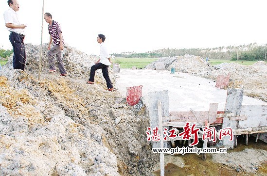 记者驱车沿引路前行,开出不远即被一堆高高的土堆拦住。记者看到,土堆后面是一个正在修建的涵洞,主要用于两边农田的排水。一位司机告诉记者,从大桥开通当天该涵洞开始施工,至今未能完工。面对高高的土堆,进出的司机只能“另辟蹊径”。引路附近是山仔村的村道,车辆不得不挤到这条仅三米多宽的村道上。记者看到,在大大小小的车辆中间,不时有摩托车和自行车穿梭往来,险象环生。遇到相对而行的车辆,只能让其中一辆车先让到路边,走走停停,极不顺畅。而山仔村的村民考虑到村中的交通安全和道路的质量,近日也将路封了起来,这更是让原本不顺畅的交通雪上加霜。