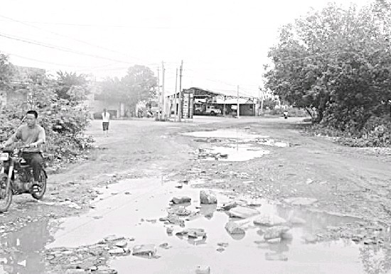 徐闻县实验中学位于穿越该县开发区的旧207国道旁,距徐闻县城大约3公里。记者10月12日驾车沿旧207国道往该中学方向开去。途经天工汽车维修厂时发现,该厂门口大约50米长的道路满是大小不一的水坑,路面原先的沥青已不见踪影。再往前开几十米,道路更烂:由于下过雨路面不仅水坑遍布,且突起一个个水泥块或石头。在路边农田里干活的群众告诉记者,那些水泥块和石头原本都是过路的群众私自运来填补路面水坑的,但却被过往的车轮从窟窿里“踢”了起来,导致路况更加糟糕。记者看到,一些车辆经过此段道路时纷纷绕道行驶,生怕被水坑“坑”了。