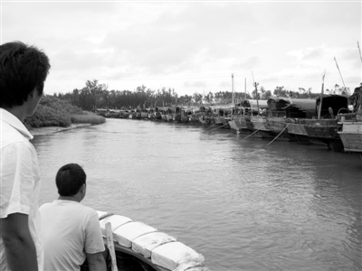 船从港门折回来,狭长的港湾内,两边泊满了被困的渔船。 渔船什么时候才能出海捕鱼呢?老渔民庞堪来摇摇头说:“除非把堵在港门的海沙清淤疏浚,否则就要等到一月才有的三天大海流,海潮高位进入港口后,这些渔船才出得去,但倦航归来又怎么办?”