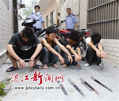 10月23日上午,民警们顺藤摸瓜,在另两名犯罪嫌疑人位于塘尾和吴阳的家中,分别将正在酣睡的两人抓获。到当天晚上,又将另一名正在塘尾一网吧上网的疑犯抓获归案。至此,这个持刀抢劫犯罪的团伙被成功打掉了。