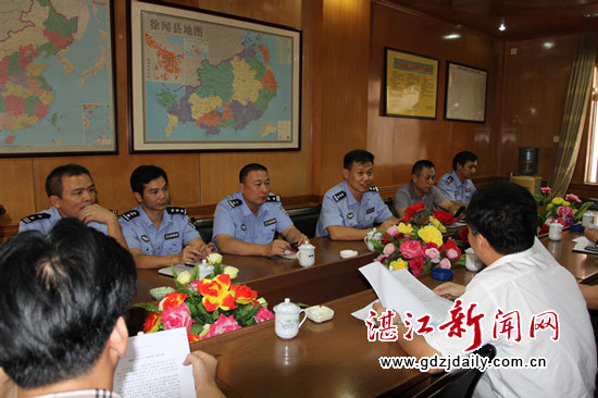 在座谈会上,徐闻县公安局局长易建华汇报了当前社会治安状况和下桥三阳桥“10.23”抢劫杀人案、“10·25”学生枪击伤亡案2宗命案侦破全过程。县公安局政委林卫强、副局长卢宁忠对相关情况进行了补充汇报。