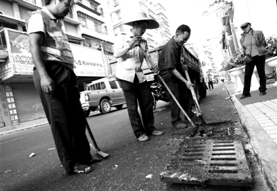 市政维护站工作人员在平整中华路路面。记者李忠 摄