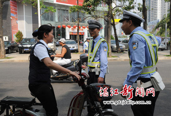 10月31日,在人民大道南、人民西五路等交通繁忙路段,笔者见到霞山大队执勤民警以教育劝导为主,对不走非机动车道的电动车进行引导,并对逆向行驶的非机动车进行教育纠正,引导违规市民顺向而行。大部分市民对交警的规范引导都乐意接受,自感不好意思立马按照交警的指引纠正,而一些非法营运的两轮摩托车不听劝导,依然视而不见 “拼命”冲行……