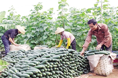 目前,该公司生产毛节瓜、青瓜、红茄、佛手瓜、椒类、玉米、苦瓜等无公害蔬菜共有20多个品种,年产供应香港和澳门的蔬菜超过5000吨,年蔬菜生产总值8000多万元。