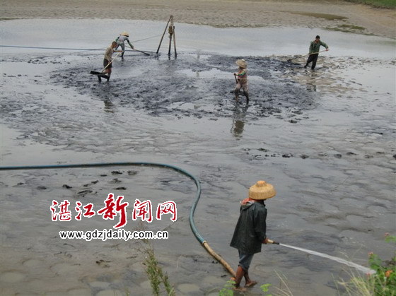 湛江新闻网讯:23日,凉风习习,笔者在徐闻县对虾养殖基地和安镇金鸡养殖场看到很多虾农正忙于清理刚刚出售对虾后的虾塘。