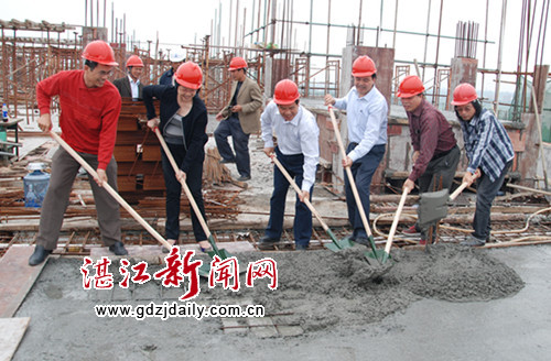湛江新闻网讯:11月25日下午,吴川市青少年宫主体结构顺利封顶,工程计划明年三月完工,按市委市政府部署,争取明年1月底完成。