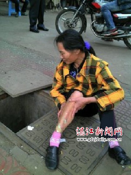 湛江新闻网讯:16日下午14时30分许,一位急着赶路的中年村妇经过徐闻县红旗一路南段东侧人行道时,不慎跌落电缆井,致右小腿受伤。事后,附近好心群众将村妇从电缆井里拉了上来,并取来止血牙膏敷其伤口。