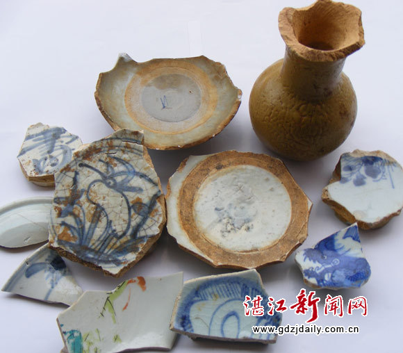 湛江新闻网讯:30日上午,位于徐闻县徐城东门住民区一姓黄的居民在自家基地上挖出古代陶瓷碎片,清洗后,经当地有经验的古董收藏爱好者鉴定,碎片为明清代陶瓷。现场挖出的陶瓷碎片大小不一,共有20多件,厚的0.8厘米,薄的0.3厘米。这些明清代陶瓷碎片以青花瓷为主,兼有白、蓝、红、绿等彩釉瓷器,这些碎片是古人普遍使用的碗、盘、罐等日用品,制作工艺精致,图案优美而富有含意。