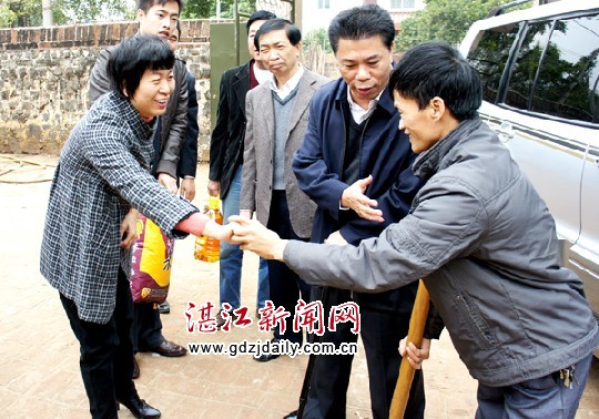 湛江新闻网讯:1月12日,市残联副理事长陈夏怡到徐闻乡村慰问贫困残疾人家庭,给他们送来大米和慰问金。