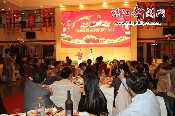 湛江新闻网讯:18日下午,徐闻县在聚雅酒家举行2012年迎春茶话会,该县领导钟力、林海武、侯德耀、符贤、戴吴金荣、林建光、黎亦鸿、李乐、蒋柯煌、冯德联等县四套班子领导与驻徐单位、县直副科以上单位领导,各乡镇主要领导,老干部代表,政协委员和社会各界人士代表欢聚一堂,同迎佳节,共谋发展,并观看了文艺表演。