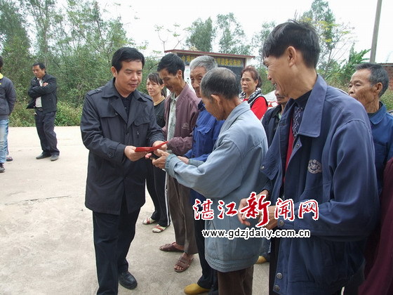 在金鸡村委会慰问现场,吴川市委常委、统战部部长招励及该部副部长龙海梅、陈钟琳、陈志刚,樟铺镇委书记许剑桢,一起为困难群众派发慰问金、慰问品。招励还代表吴川市委市政府及市委统战部,鼓励困难群众勤劳致富,改善生活,并祝愿他们身体健康、家庭幸福、新春快乐,生活越过越好。