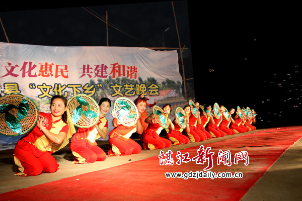 去年1月20日晚,由县委宣传部牵头组织的送政策、送戏、送法律、送图书、送电影下乡的“文化惠民,共建和谐”文化下乡活动仪式在徐闻文化广场正式启动,30多支业余舞蹈健身队在表演的开场舞《欢天喜地》中拉开了帷幕。