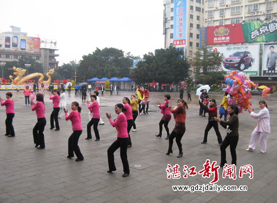 湛江新闻网讯:大年初二、初三,由徐闻县委宣传部、县老体协组织县城10多支健身队,在该县文化广场进行健身舞展演,以乐观积极的态度贺春节,吸引了众多市民观看。徐闻县委宣传部副部长李根到现场观看表演,并向老人们送上新春祝福,与老年人同乐贺春节。