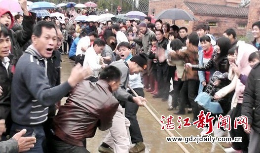 “一、二、三!加油——”这是徐闻县和安镇佳平村委会佳吉村村民在村里新建的篮球场开展新春拔河比赛。参赛村民在齐心协力拉绳,一些村民在旁边呐喊助威,场面紧张而热烈……