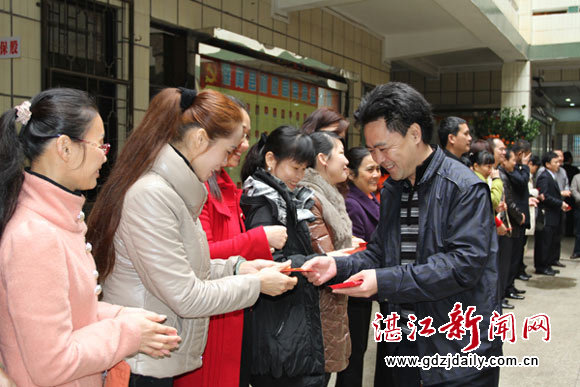 当天一大早,书记、县长来到该县人大、政协等部门拜年。每到一处,书记、县长都与大家一一握手,给大家发派利是,并向大家祝福新年,祝愿他们在新的一年里身体健康,事业进步。周围不时响起热烈的掌声,处处显现出喜庆祥和的节日氛围。书记、县长希望大家要发扬优良的工作作风,在新的一年里,继续支持、参与、协助县委、县政府做好各项工作,为建设生态、富裕、和谐新徐闻做出新的更大的贡献。