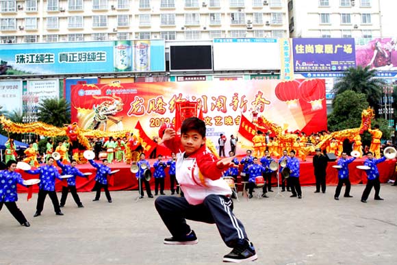 此次舞龙舞狮活动节目丰富而新颖,既有龙狮共舞贺新春、乡村传统八音锣鼓颂龙年,又有武术表演,还邀请了曾参加过2008年奥运会和残奥会开幕式武术表演者、河南塔沟少林武校的徐闻籍13岁学生为观众献上精彩武术表演,观众一浪高过一浪的欢呼声把活动推向高潮。