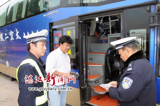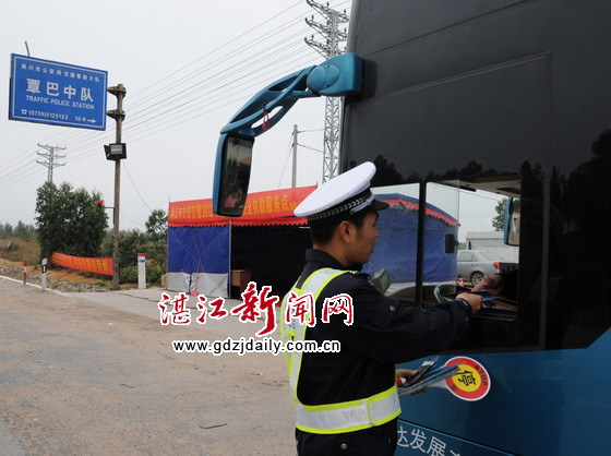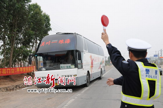 湛江新闻网讯:日前,春运已进入节后返程客流高峰期。为确保市级春运执勤服务点更好发挥管控作用,吴川交警大队覃巴中队从辖区春运实情出发,针对一些营运客车想利用“驳客”方法躲避执勤点检查的迹象,采取定点检查与机动巡查相结合的管控方式,在执勤服务点坚持实行24小时运作的基础上,还主动调整警力加大流动巡逻,对途经的7座以上客车实行动态检查,严把客车入市、出市和行驶“三关”,有效管控客车超载现象发生。