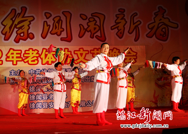 湛江新闻网讯:“银龄风采,舞动南端”,由徐闻县委宣传部主办的“龙腾徐闻闹新春”系列活动之一的“2012年老体协专场文艺晚会”,于2月2日(大年十二)晚在徐闻文化广场盛大举行。这场“老年人春晚”,紧紧围绕“文化惠民,共建和谐”为主题,众中老年人歌舞手齐聚首,放歌起舞展风采,上千市民在这里共品了一场艺术大餐。县委常委、宣传部长戴吴金荣、县老体协主席邢如礼、常务副主席林诗仁等领导出席了春节联欢晚会。