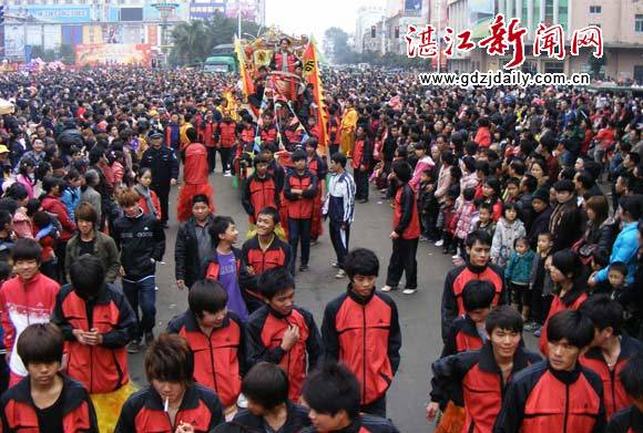 湛江新闻网讯:随着元宵佳节的临近,徐闻县城人民群众提前举行巡游活动大闹元宵节。从正月十三开始,一直闹到十五元宵节,为期3天的活动是一年中最有特色最为热闹的日子。每到此时刻,徐闻县城各大街道,彩旗飘扬,锣鼓喧天,鞭炮连鸣,处处是欢乐的源泉。
