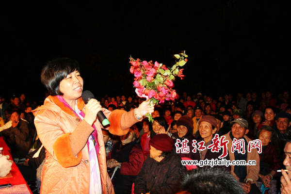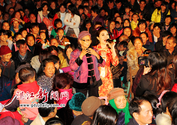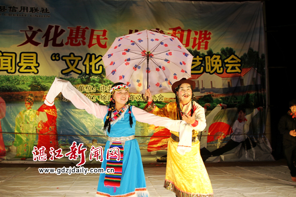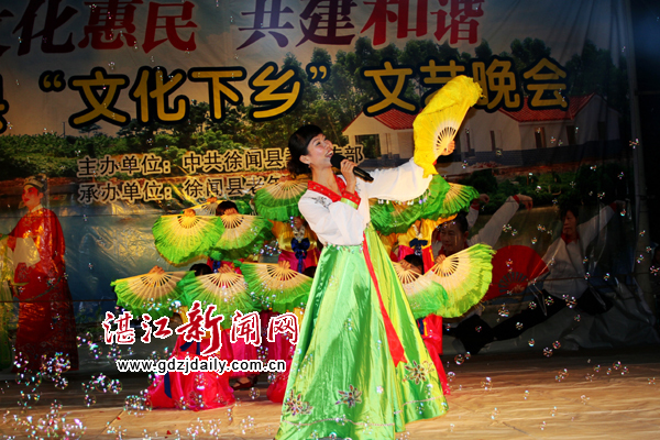 大年初十晚,由县委常委、宣传部部长戴吴金荣率队送戏到龙塘镇下洋村,晚会演出内容更加丰富、形式多样、诙喈幽默、格调清新、声情并茂、雅俗共赏。舞台上,那些热情奔放的集体舞蹈、悠扬的歌声、轻快的广东音乐曲子,从不同侧面反映了近年来徐闻新农村的巨大变化,展现出当代农民的良好精神风貌。数千名老百姓看到、听到党的惠民政策,如春风化雨,滋润着徐闻百姓的心田。