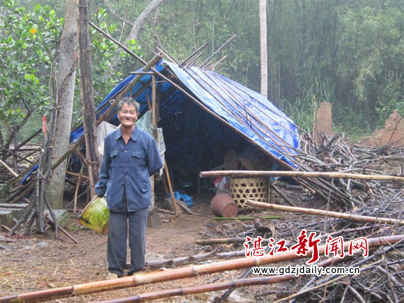 走进该村,看到十几只大小不一的走地鸡正在寻觅食物,72岁的五保户——窦祥康正在低矮的棚子里劈柴,看到笔者的到来,通过简单的虚寒问暖后,老人家放下手中的活儿,细细地道来他一个人的村庄的故事。今年已经七十多高龄的窦祥康老人家说,他一出生就生活在这个小山村中,当时整个村有十三户人家,都是姓窦,由于该村三面环山,村前是田野,交通上的不方便,村中没有通电,严重制约着经济的发展,村民平时靠种植田地来获取粮食,编织竹器拿到10里外的镇墟上出售所得的钞票来购买油盐来过生活,生活一直过得干巴巴。从80年代起,村中的村民陆陆续续地搬迁到其他地方去居住 ,从没有去过比镇墟还远的地方的窦祥康老人,由于经济上的不允许,一度也想搬出该村居住的他,不得不守着祖辈遗留下来的、用土坯筑起的茅草房,当笔者问起他是否结过婚时,老人家说,生活上的贫困,居住环境的闭塞,年轻时曾经有邻近村庄的媒人给他介绍过对象,但当媒人带着女方一来到他所在的村庄相亲时,看到这个“世外桃源”的境况后,连饭都没有吃就走了……;92年后该村的村民除了窦祥康老人家后,全都搬到其他地方居住了,下后坑村从那时开始就成了一个人的村庄。窦祥康老人家一个人继续演绎着他的人生,日出而作,日落而归,天黑时点燃煤油灯,然后在灯下烧火做饭,饭后就早早休息,2011年的11月22日,正在屋里生火烧水的他,因跑到隔离的村庄看社戏时,没有熄灭的灶火经过柴草的蔓延把祖辈留下给他的茅草屋烧个精光,当地 镇政府的民政部门给他几百元重建家园,他用竹木和塑料纸在被大火烧毁的老屋旁搭起一个集住房,厨房,工具房一身的简易棚进行蜗居。