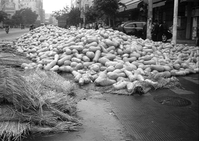 记者协理接到报料后,于8时20分赶到现场时,见大堆南瓜及杂物散落在路上,在场围观群众说,货车已被两辆吊车吊起离开了现场。据近在现场商店人员称,这辆大货车是在凌晨近5时翻倒的,当时他们还在睡觉,突然听到“隆”的一声巨响,被惊醒起来后,发现一辆外地大货车翻倒在路上,南瓜倒出一大堆,司机等人受惊呆站在路边。他们说,货车是从海南运货过来的,估计是因车速快转弯不过来而翻倒的。