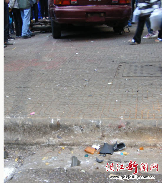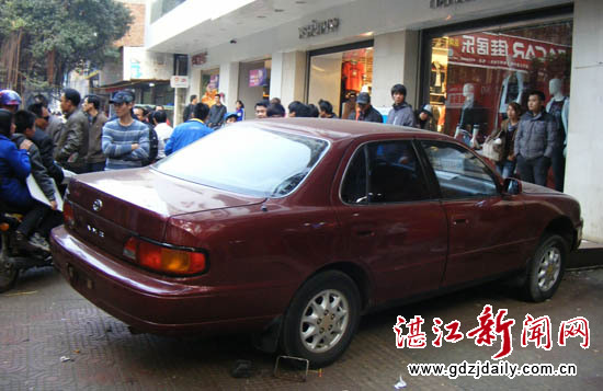 据目击者称,该小轿车穿过马路时速度并不快,失控后撞上正在行驶的二轮摩托车,车上夫妇二人和小孩都倒卧路边。小轿车却没有停下来,继续冲向对面人行道并拖着摩托车身至街边一店铺台阶前才被卡住,幸好未伤及过往的行人。事发当时,附近不少群众都听到很刺耳的碰击声音和伤者的呼叫声,场面险象环生。