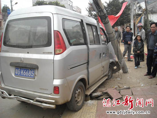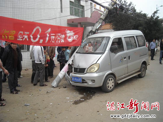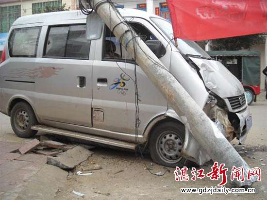 湛江新闻网讯:22日17时许,在徐闻县新寮镇的跃进街发生一起面包车撞断供通讯使用的电线杆事故,幸好事故中没有出现人员伤亡。