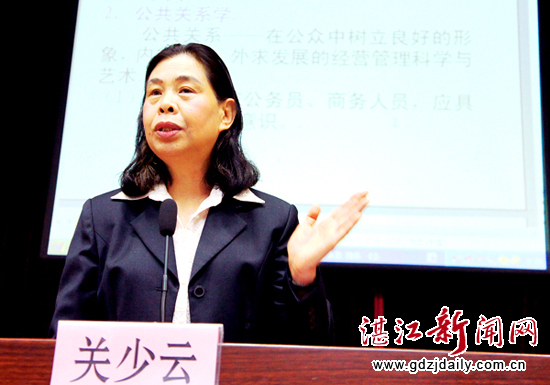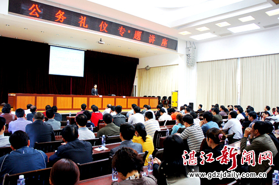 湛江新闻网讯:2月24日上午,徐闻县委在县会议中心举办“公务礼仪”专题讲座,邀请北京旅游大学教授关少云为县直机关和基层单位办公室干部200多人上课,为公务员精心配制了一席“礼仪文化大餐”。县委常委、组织部长黎亦鸿为讲座作了开班致辞。