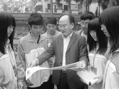 小榕树文学社师生在一起研究文学报刊。 周铁军 摄