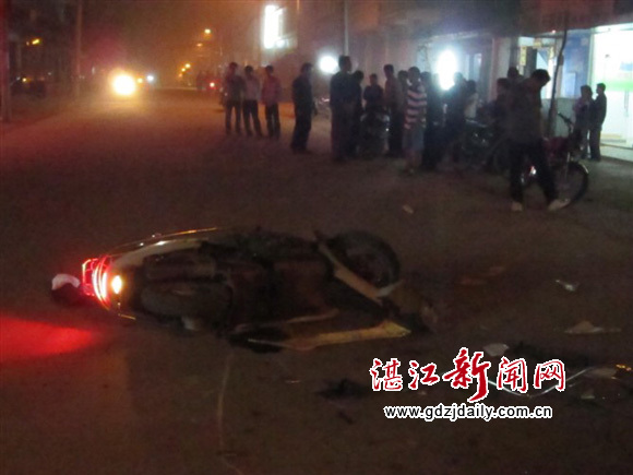湛江新闻网讯:24日晚上10点半左右,在徐闻县和安镇某宾馆附近的大街上发生一起车祸。一辆摩托车被一辆相向而行的小轿车撞倒,骑摩托车的两名男子受伤入院。笔者希望市民为了自己以及他人的安全,在繁忙的街道行车时请减速慢行。