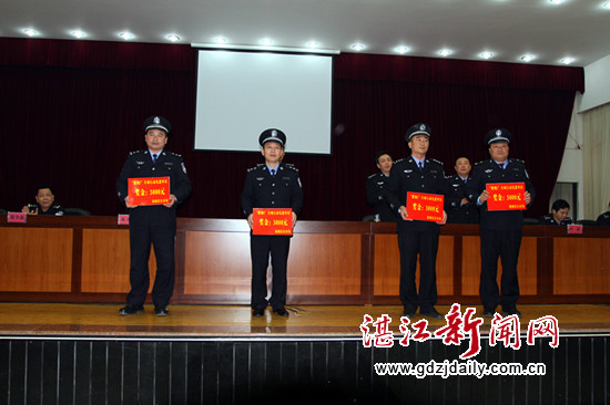 会上,全体公安民警观看了警示教育片《被金钱俘虏的卫士》,该片主要反映原廉江市公安局长马东进腐化堕落,从人民的卫士变成了阶下囚,给人以深刻启示。徐闻县公安局党委副书记、副局长卢宁忠宣读了徐闻县公安机关队伍作风整治年活动方案;徐闻县公安局党委副书记、政委林卫强宣读开展打黑除恶“紫荆3”专项行动方案;并对去年该局打黑除恶“紫荆2”专项行动先进单位刑警大队、经侦大队、禁毒大队、打击涉枪专案组四个单位进行表彰通报及颁奖。