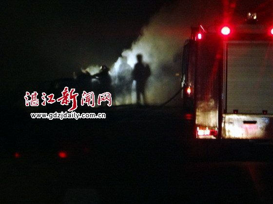 湛江新闻网讯:3月10日晚7时30左右,在徐闻县曲界镇的锦曲公路上,一辆从锦曲公路往曲界镇墟方向的私家车,突然失火自燃,该车的司机匆忙跳下车拿出手机拨打119报警,但由于火势太猛,尽管消防车在第一时间赶过来,把火扑灭,但失火自燃的私家却变成废铁一堆。 事故造成交通阻塞,直到晚上8时15分左右,该公路才恢复通行 。