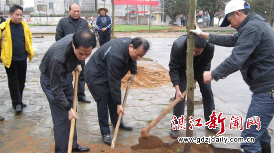 湛江新闻网讯:为了美化校园的环境,打造绿化校园。3月12日上午,徐闻县民政局局长朱新、徐闻县教育局副局长潘建义、和安镇镇长柯俊带领机关干部20多人冒雨来到徐闻县和安中学开展植树活动。