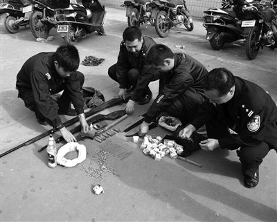 民警搜获火药枪等一批作案工具。 记者林明聪摄