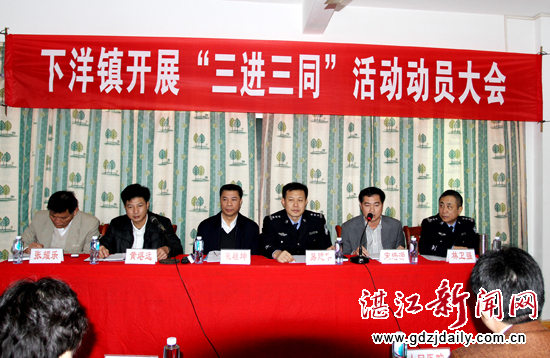 是日上午,下洋镇召开“三进三同”活动动员大会,大会由下洋镇镇长黄堪远主持。县人民政府副县长、公安局长易建华,县政协副主席、残联理事长张祖坤分别在会上作动员讲话。下洋镇党委书记宋培源介绍了下洋镇农村工作情况。参加大会的有县委政法委、公安局、县司法局、县农机局等“三进三同” 副科以上挂点干部,以及驻下洋扶贫挂钩单位领导、下洋镇各村委会党支部书记共近100人。