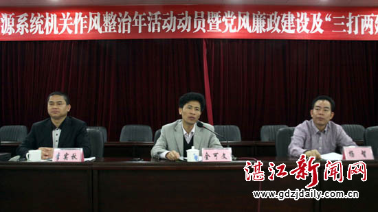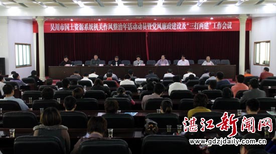 湛江新闻网讯:3月23日,吴川市召开国土资源系统机关作风整治年活动暨党风廉政建设及“三打两建”工作会议,吴川市委常委、常务副市长全可文以及市国土资源系统的全体干部职工参加了会议。