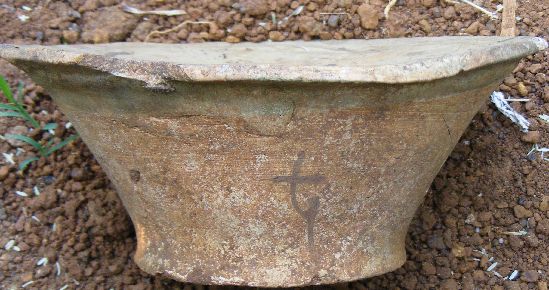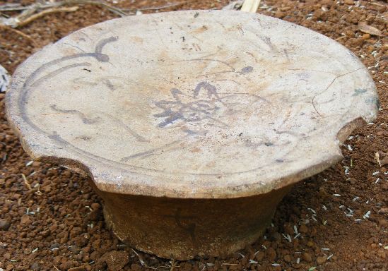 湛江新闻网讯:近日,徐闻县迈陈镇那策村一姓林村民在村后的玉米园地里捡回一件造型独特的古陶瓷。整件陶瓷呈蘑菇状,直径21cm,高10cm,重2.2市斤。陶面光滑彩有青釉花卉图案,陶底平整较为粗糙。据姓林村民回忆,古陶瓷是在前段时间用拖拉机犁玉米园地时,不经意犁出而闲置园地旁边的。目前,经过当地有经验的收藏爱好者鉴定,该件陶瓷是宋代陶瓷枕(雷州民窑),是一种随葬品。