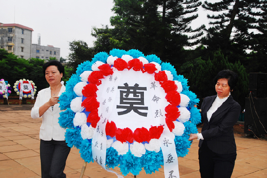 拜祭活动中,县委、县政府、县人大、驻徐部队、老游击队战士联谊会、团县委、妇联、各中小学校先后向革命烈士敬献花圈。接着全体人员肃立,默哀1分钟。
