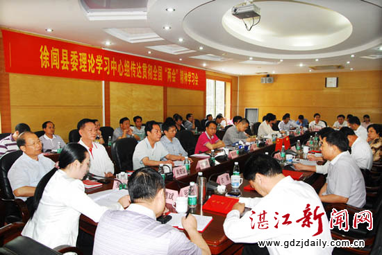 湛江新闻网讯:4月6日上午,徐闻县委中心组召开会议传达贯彻学习全国“两会”精神和省、市传达贯彻学习全国“两会”精神会议上主要领导的讲话精神。徐闻县委书记、人大主任钟力主持会议并作重要讲话,强调各乡镇各部门要认真学习贯彻全国“两会”精神,真抓实干,凝心聚力,开拓进取,扎实做好当前各项工作,努力建设海峡城市和生态发展区,实现徐闻经济社会后发崛起,以经济发展的优异成绩和社会大局的和谐稳定迎接党的十八大胜利召开。该县四套领导班子,县经济开发区主任、书记,政府组成局第一把手,各乡镇(街道)党委书记及县委中心组秘书组成员等参加了学习会。