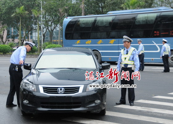 湛江新闻网讯:4月7日,市公安局交警支队利用星期六时间,延续异地用警的方法,由交警支队侦查大队牵头,从雷州大队抽调20多名交警联合参加打击盗窃汽车犯罪专项行动及“涉牌涉证”车辆。尽管当天市区普降大雨,但仍查扣了违法车辆26辆,其中套牌车1辆、不挂牌车25辆,暂扣证件32起,纠正查处交通违法行为69宗。