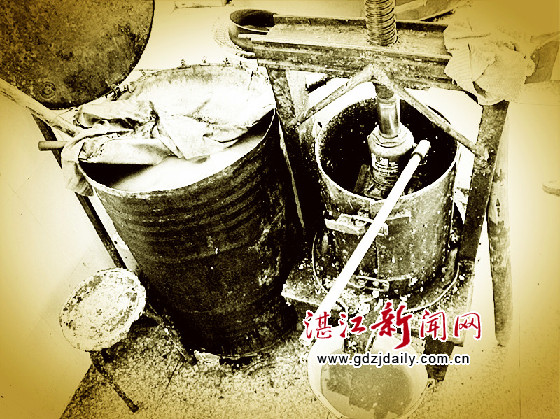 6日上午,徐闻县公安等部门在“三打”行动中,成功“挖出”一家隐藏在曲界镇墟的疑似地沟油黑作坊,当场查获1200多斤“地沟油”及一批机器设备,抓获3名嫌疑人。