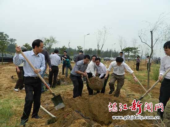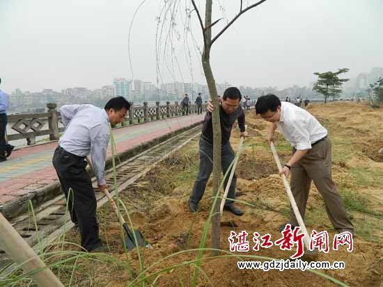 湛江新闻网讯:春回大地,万物复苏。本月9日,吴川市领导曹兴、江毅、杨彩兰、陈列、朱彬莹等四套班子领导以及市各机关单位、镇(街)领导到市区江心岛、吴阳镇等地植树造林,为绿化道路、绿化山头、美化家园而挥洒一份汗水。
